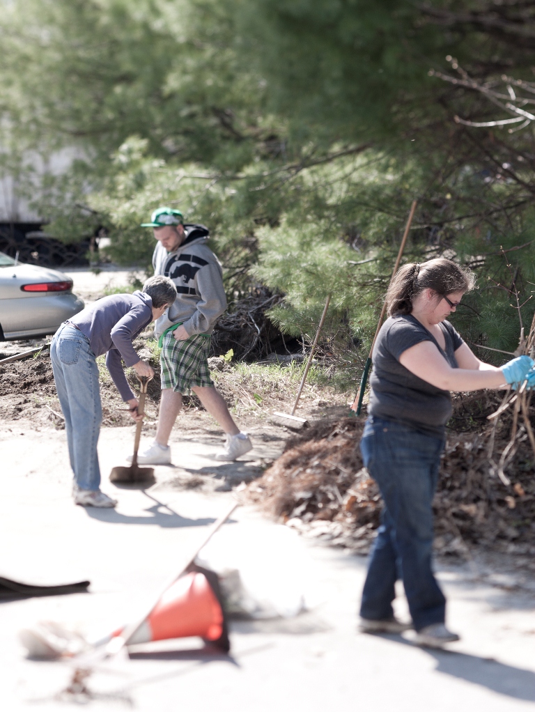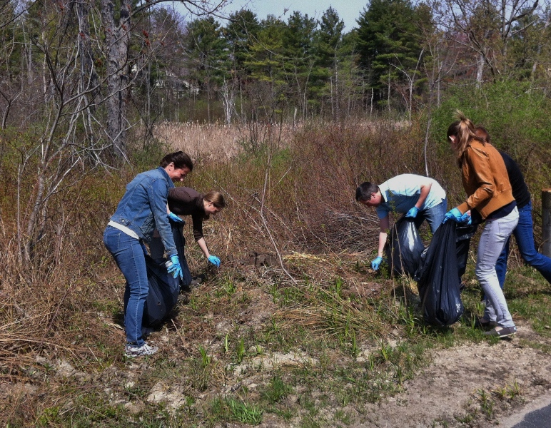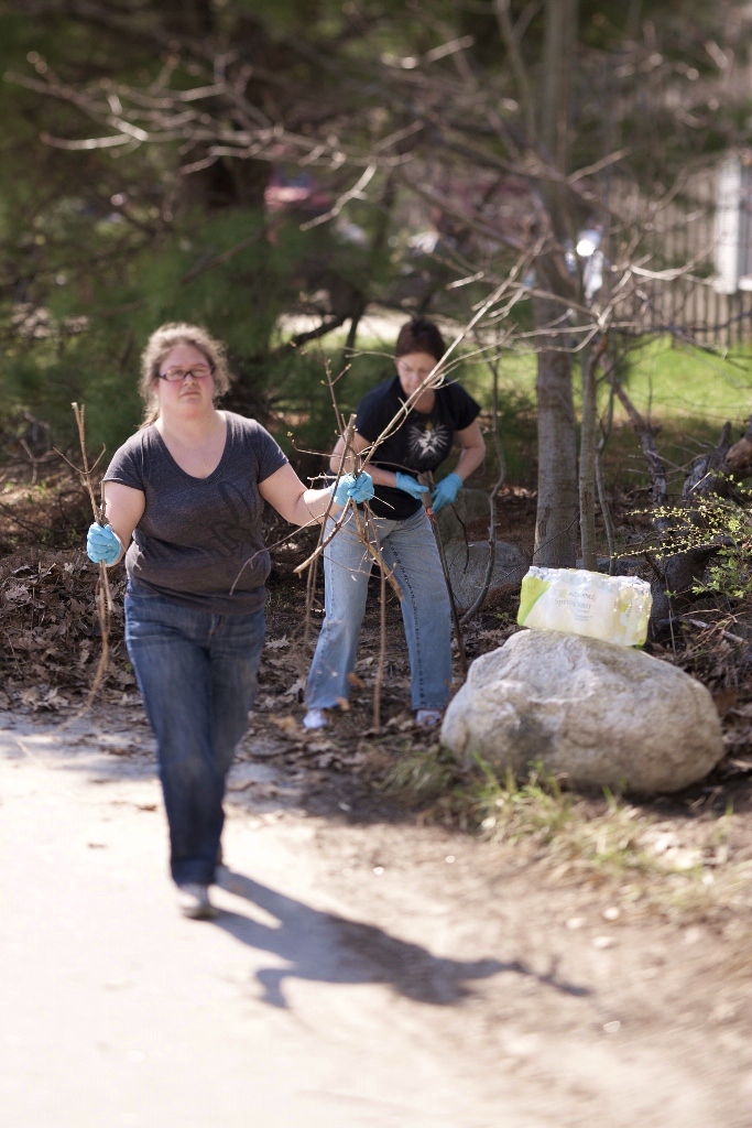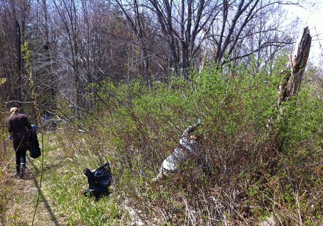 Even though it was the Friday prior to Earth Day 2012, Cuddledown’s employees decided to do some spring cleaning in the parking lots and yards surrounding the company. One manufacturing employee even decided to make use of one of our “downproof” clean suits 🙂 and Cory, one of our fellow Bedding Snob blog posters from the web team got so far into the underbrush, we were afraid we’d lose him!