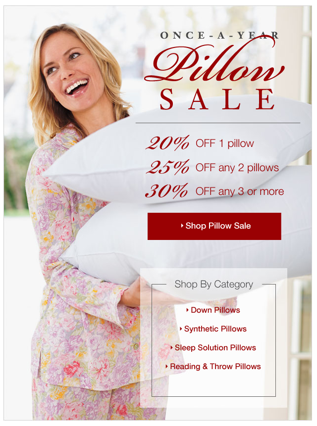 If you’ve been thinking of replacing your pillow, there’s no better time to do so! During our annual pillow sale, save on all plush, comfy Cuddledown pillows, with styles to suit every sleeper (check out our Pillow Picker!). Plus, the more you buy, the more you save, so it’s a great time to stock up on holiday gifts. Click on the image below to find your perfect pillow!